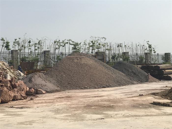 砂石中砂土混合,長期堆放,有雜質(zhì);混合料中毛石、石塊大小不一。
