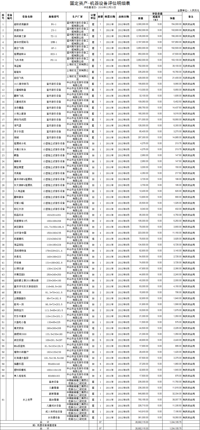 一、拍賣標(biāo)的:金領(lǐng)歡樂世界廢舊設(shè)施設(shè)備一批,包括:1、游樂場廢舊設(shè)備一批,參考價133.41萬元。該批設(shè)備已停運(yùn)三年以上,按現(xiàn)狀拍賣;2、空調(diào)等制冷設(shè)備,參考價21.47萬元;3、一般桌椅、貴重桌椅、辦公用品、廚具用品,參考價4.58萬元。標(biāo)的詳情見所附清單。