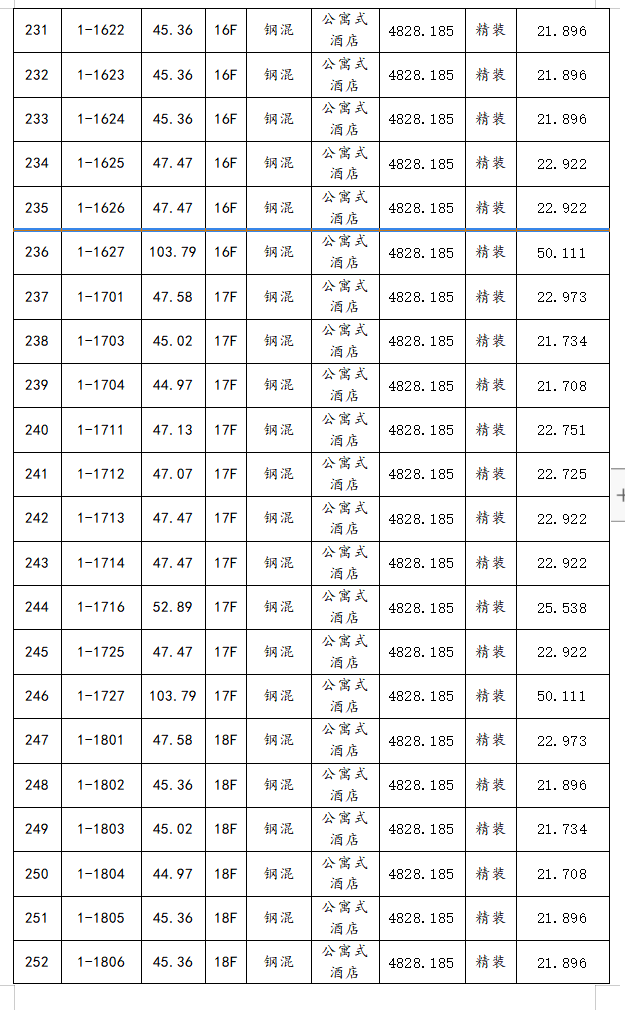 具體每套房屋所在樓棟、房號、面積、樓層、房屋用途、單價及每套價格詳見以下標(biāo)的物清單: