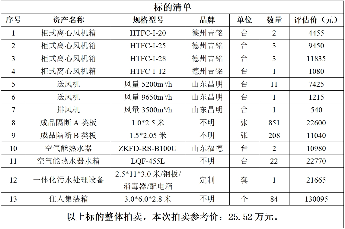 一、拍賣標(biāo)的:六安市中醫(yī)院閑置資產(chǎn)一批,包括:一體化污水處理設(shè)備、柜式離心風(fēng)機(jī)箱、空氣能熱水器、送風(fēng)機(jī)等,參考價(jià):25.52萬元,競買保證金:2萬元。